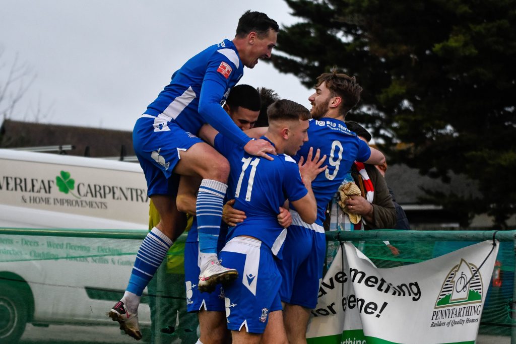 The Farm’s fifth straight victory against Lymington last week pushed Manager Lee Lashenko’s side into the last play-off position – but at the top of the form table with 16 points from their last six matches. Trailing by a single goal at half-time, Farm clawed their way back in champion style courtesy of goals from Jayden Nielsen and Mike Bryant.